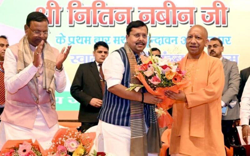 BJP National President makes first Uttar Pradesh visit; arrives at temple with Chief Minister Prayers offered at Shri Banke Bihari...
