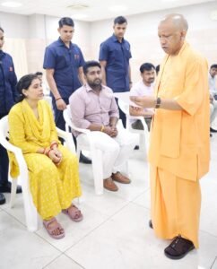 CM fondly caressed cows and cattle by calling them by name and gently patting them CM Yogi personally cleaned dust...